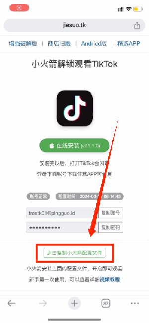 打开这个网址 https://jiesuo.tk/shadowrocket/ ,复制「小火箭配置文件」