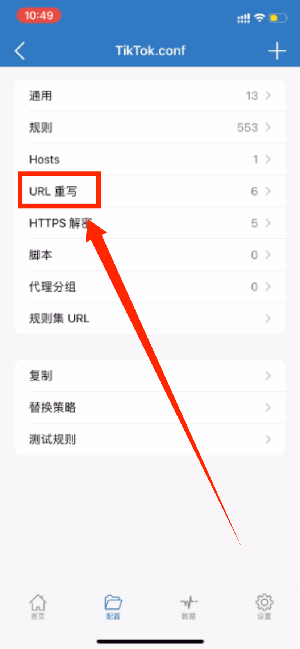 返回到tiktok.conf的配置目录下,点击「URL重写」
